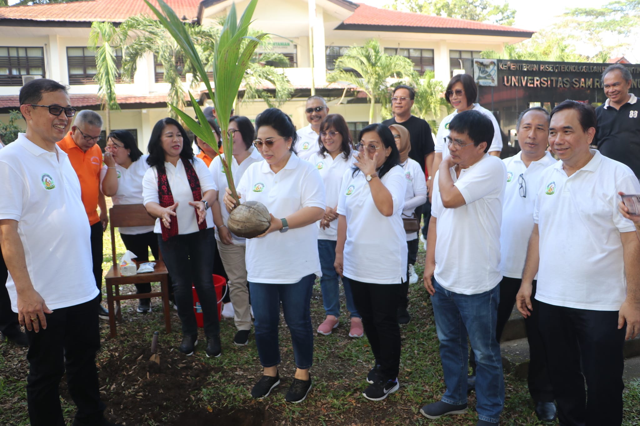 Dalam kegiatan ini, dilakukan juga penanaman salah satu bibit kelapa varietas terbaru di area Fakultas Pertanian Unsrat. Nampak hadir dalam kegiatan ini para pimpinan Unsrat seperti wakil rektor, dekan, Dekan Fakultas Pertanian, para mahasiswa dan alumni. (graceywakary)