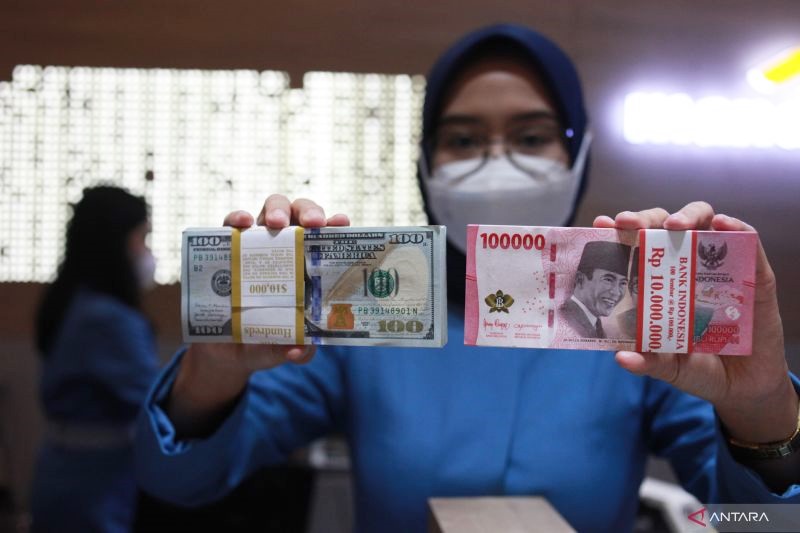 JAKARTA, 5 JUNI 2023 (ANTARA) – Nilai tukar (kurs) rupiah terhadap dolar AS yang ditransaksikan antarbank di Jakarta pada Senin pagi, menguat 0,66 persen atau 100 poin menjadi Rp14.894 per dolar AS dari sebelumnya Rp14.994 per dolar AS.