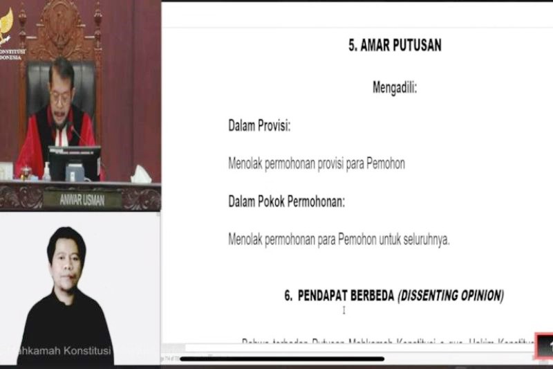 JAKARTA, 15 JUNI 2023 (ANTARA) – Majelis hakim Mahkamah Konstitusi menyatakan menolak permohonan Para Pemohon pada sidang perkara gugatan Undang-Undang Nomor 7 Tahun 2017 tentang Pemilihan Umum (Pemilu), sehingga sistem pemilu proporsional terbuka tetap berlaku.