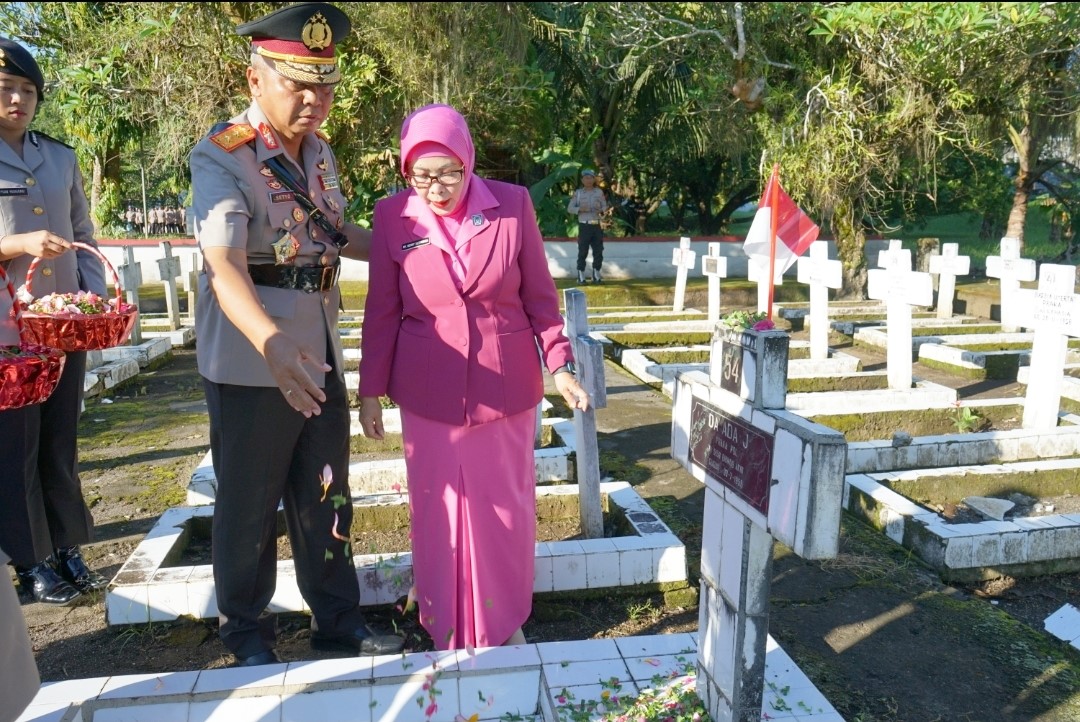 Kapolda Sulut Irjen Pol Setyo Budiyanto didampingi Ketua Pengurus Daerah Bhayangkari Sulut Henny Setyo Budiyanto, memberikan waktu untuk memberikan penghormatan pada para pahlawan yang gugur dan di makamkan di TMP. Selanjutnya, rombongan menuju Mako Ditpolairud Polda Sulut, di Tandurusa, Kota Bitung untuk upacara tabur bunga di laut, yang dilaksanakan dengan menggunakan Kapal Polisi Cucak Rawa 5004. Upacara tersebut ditandai dengan penghormatan kepada arwah para pahlawan, mengheningkan cipta, peletakan karangan bunga dan penaburan bunga disejumlah pusara, juga pelarungan karangan bunga serta penaburan bunga di laut, ditutup pembacaan doa.