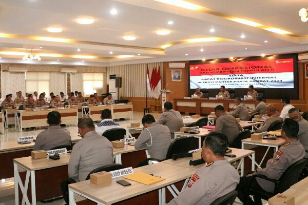 Kapolda juga memaparkan gambaran situasi umum di wilayah Sulut yang memiliki jumlah penduduk 2.621.923 jiwa, dimana 1.992.396 jiwa penduduk diantaranya telah terdaftar sebagai pemilih dalam Pilkada serentak 2024. “Keamanan di 15 kabupaten dan kota, mulai dari 171 kecamatan, hingga di 1.839 desa dan kelurahan, serta keamanan di 4.390 TPS yang telah dipersiapkan untuk pelaksanaan pemungutan suara nantinya, jadi prioritas kami,” urainya.