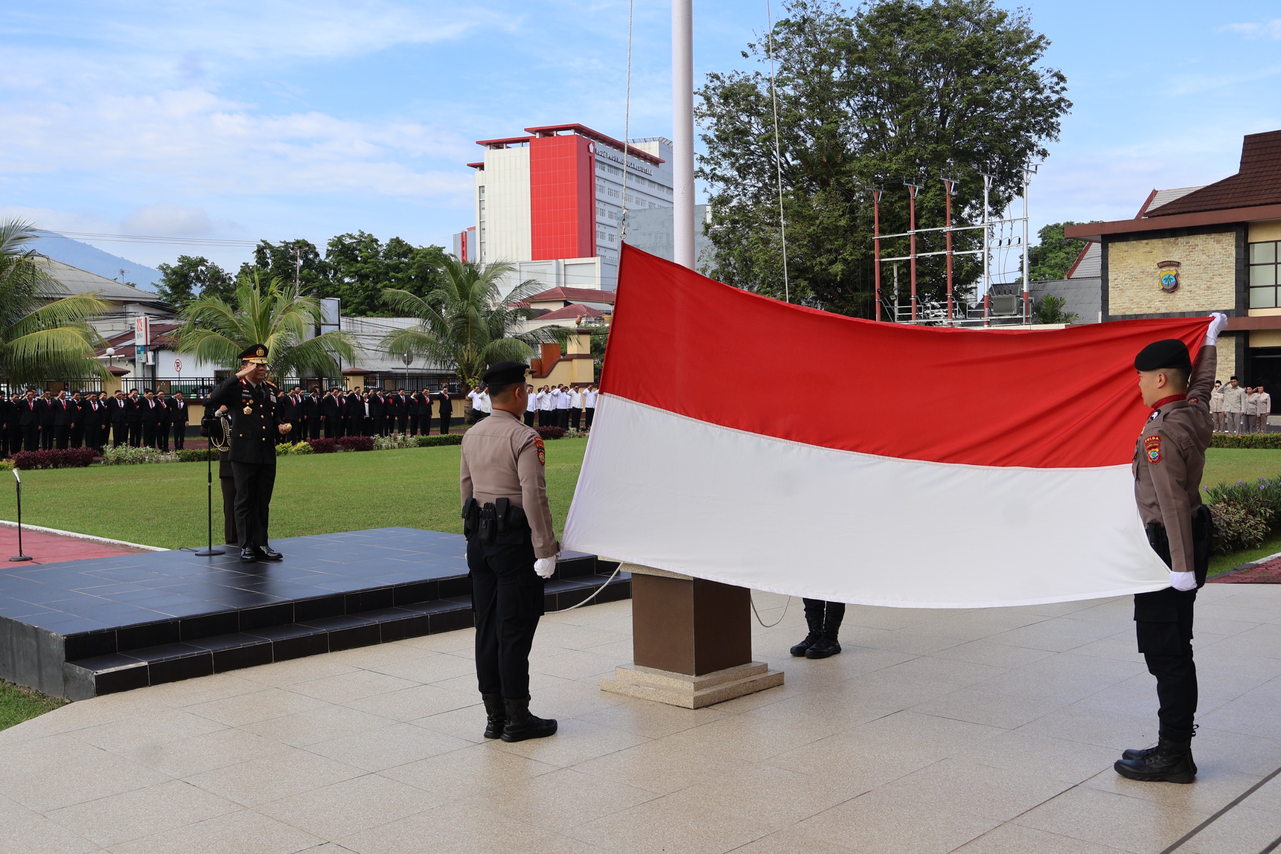 MANADO, 28 OKTOBER 2024 – Kapolda Sulawesi Utara (Sulut), Irjen Pol Roycke Harry Langie memimpin upacara bendera memperingati Hari Sumpah Pemuda ke-96 Tahun 2024, pagi, di Lapangan Presisi Mapolda Sulut.