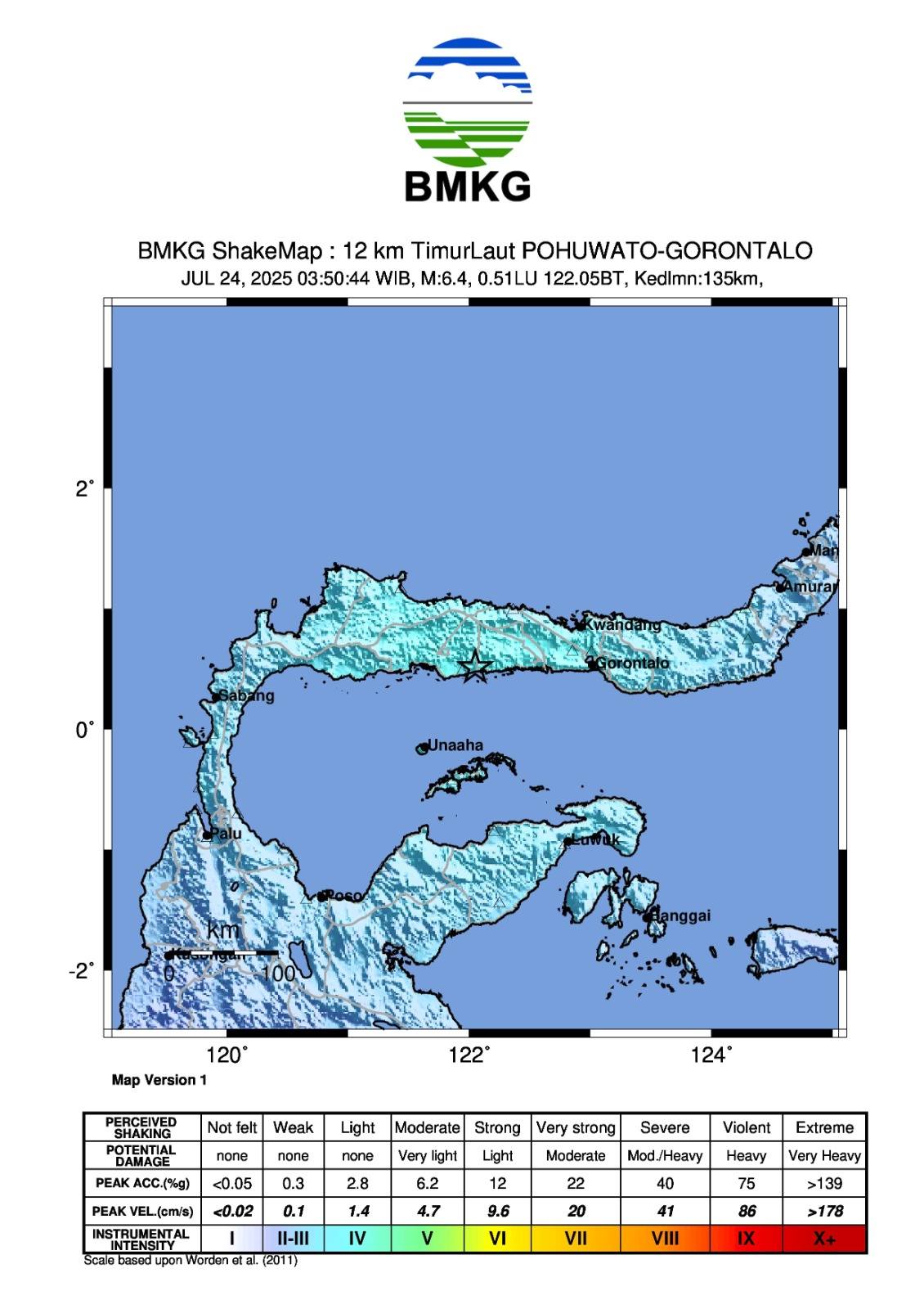 MANADO, 24 JULI 2025 – Gempat bumi terjadi di Pohuwato Gorontalo pada 04.50 WITA, subuh tadi.
