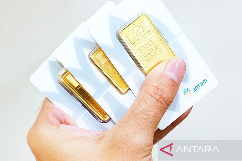 Seorang warga memperlihatkan logam mulia Antam, Kamis (22/5/2025) di Jakarta. ANTARA/Gunawan Wibisono/aa.