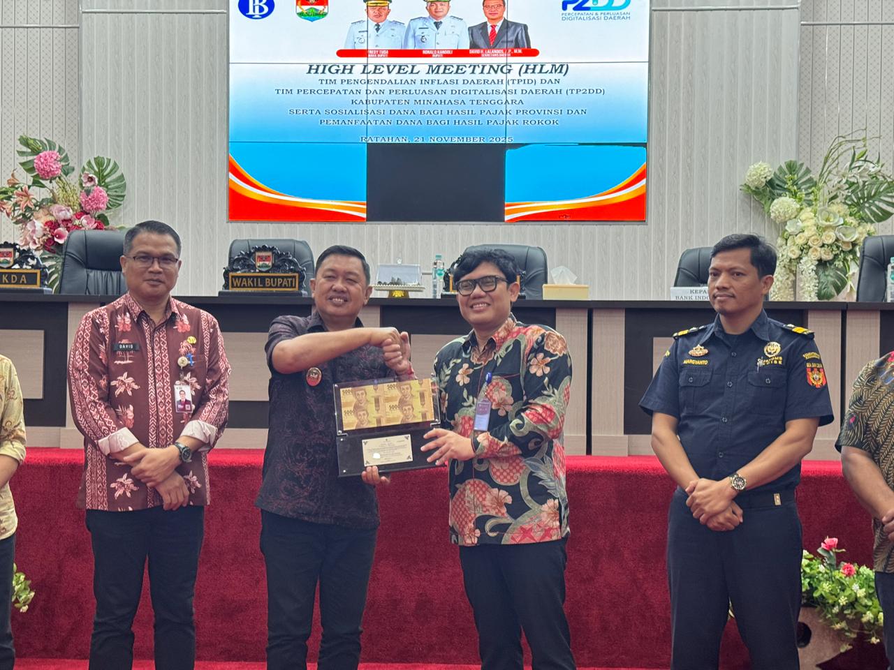 MANADO, 23, NOVEMBER 2025 – Demi memperkuat langkah strategis, untuk menjaga stabilitas ekonomi jelang Hari Besar Keagamaan Nasional (HBKN), maka Pemerintah Kabupaten Minahasa Tenggara (Mitra) bersama Bank Indonesia (BI) Kantor Perwakilan(KPw) Sulawesi Utara (Sulut) menggelar High Level Meeting (HLM) Tim Pengendalian Inflasi Daerah (TPID) dan Tim Percepatan dan Perluasan Digitalisasi Daerah (TP2DD) belum lama ini (21/11).