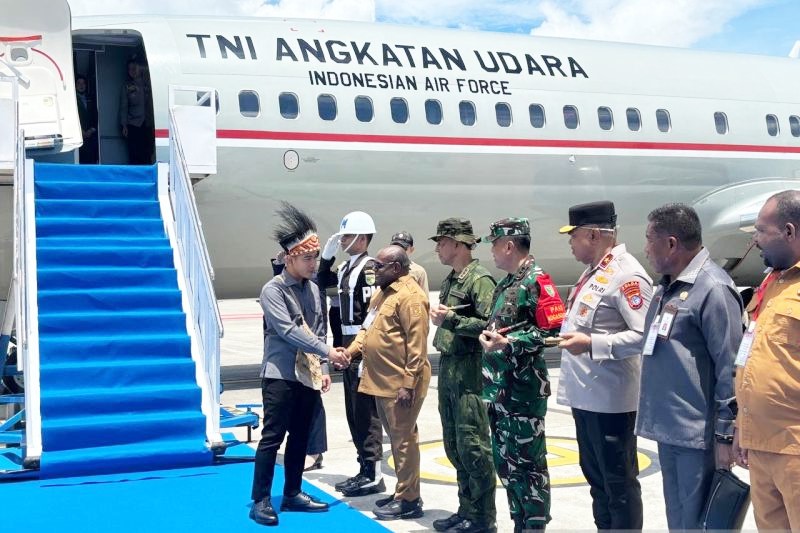 Setibanya di Bandara Douw Aturure Nabire, ia bersama rombongan dari Jakarta, antara lain Menteri Koordinator Bidang Politik dan Keamanan Djamari Chaniago dan Wakil Menteri Dalam Negeri Ribka Haluk, disambut Gubernur Papua Tengah Meki Fritz Nawipa.